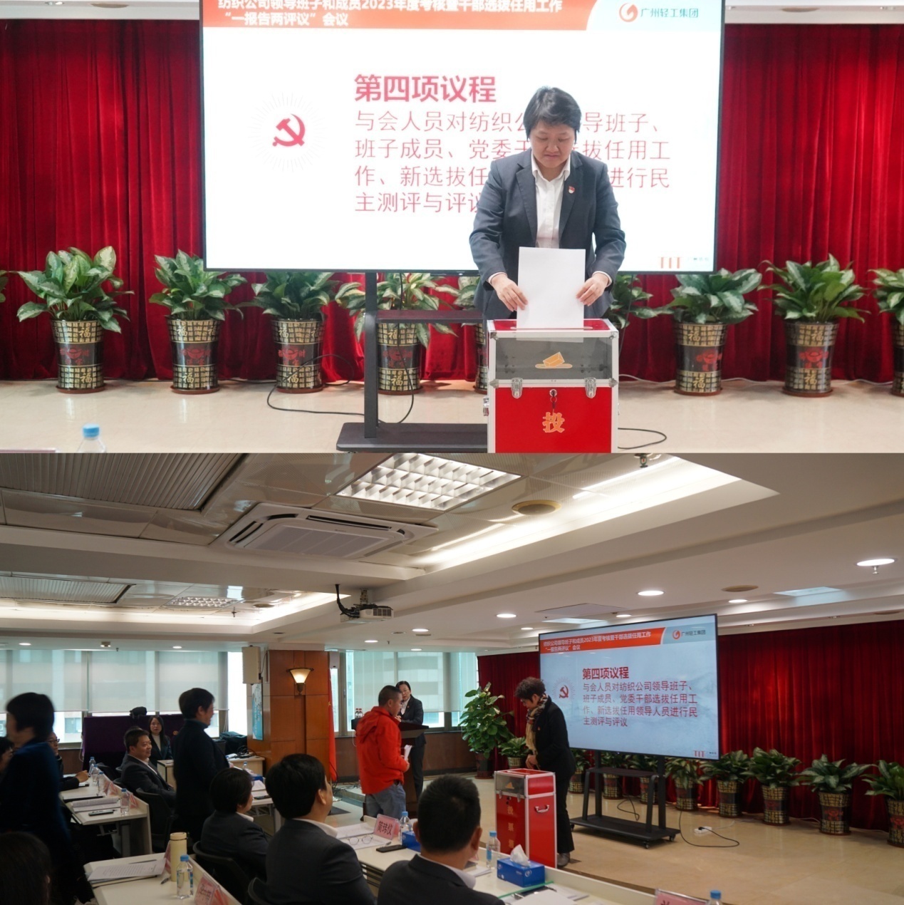 2月28日下午,紡織公司黨委召開領導班子和成員2023年度述職暨干部選拔任用工作“一報告兩評議”會議。會議由紡織公司黨委副書記、工會主席丘海瀾主持。紡織公司領導班子成員、本部中層管理干部、屬下企業(yè)領導班子成員、企業(yè)“一代表兩委員”以及黨員干部群眾代表參加了會議,廣州輕工集團黨委組織部派員出席了會議。