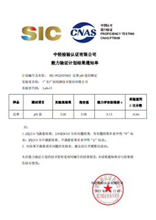 近日,廣紡檢測(cè)成功參與由中輕檢驗(yàn)認(rèn)證有限公司組織的“SIC-PG2025002 皮革pH的測(cè)定”能力驗(yàn)證計(jì)劃。憑借專業(yè)的技術(shù)實(shí)力與嚴(yán)謹(jǐn)?shù)墓ぷ鲬B(tài)度,我們提交的測(cè)試結(jié)果獲評(píng)“滿意”。