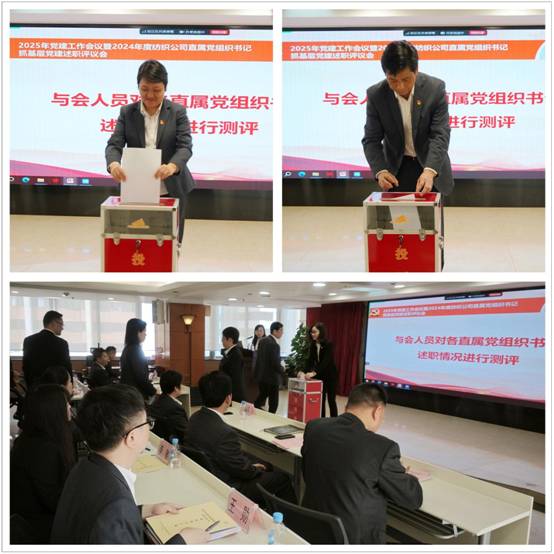 與會人員秉持客觀公正的原則,采取無記名投票方式對各直屬黨組織書記述職情況進行測評。